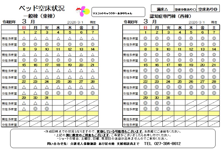 3月分空床情報を更新しました